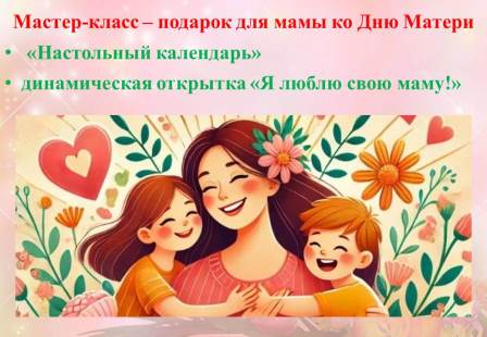 В ноябре 2025г. специалисты отделения реабилитации несовершеннолетних с ограниченными физическими и умственными возможностями в преддверии Дня Матери проводили с ребятами мастер-классы по изготовлению подарков для мам своими руками – «Настольный календарь» и динамической открытки «Я люблю свою маму!».