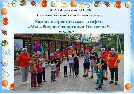 05.08.2025 г. специалисты отделения социальной помощи семье и детям ГАУ АО «Ивановский КЦСОН» в рамках летней оздоровительной площадки «Страна летних затей» провели выездное мероприятие в с. Константиноградовка военно-патриотическую эстафету «Мы – будущие защитники Отечества!».