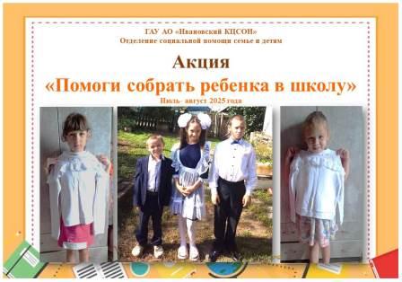 В течение июля и августа 2025 года специалисты отделения социальной помощи семье и детям ГАУ АО «Ивановский КЦСОН провели акцию «Помоги собрать ребенка в школу».