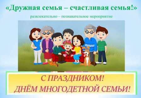 В преддверии празднования Дня многодетных семей - 28 августа, специалисты отделения реабилитации несовершеннолетних с ограниченными физическими и умственными возможностями, для многодетных семей подготовили и провели развлекательно–познавательное мероприятие «Дружная семья – счастливая семья!».