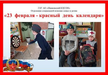 С 16.02.2026 г. по 20.02.2026 г. специалисты отделения социальной помощи семье и детям подготовили и провели конкурсно-развлекательную программу «23 февраля-красный день календаря», посвященную Дню защитника Отечества.