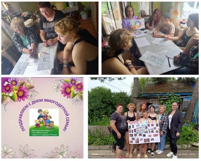 13.08.2025 года специалистами ГАУ АО «Ивановский КЦСОН» отделения по подготовке и сопровождению замещающих семей в преддверии празднования Дня многодетных семей, проведено выездное мероприятие «Мама, папа, брат и я – это дружна СЕМЬЯ» в семье, в которой воспитывается трое приемных детей. «День многодетных семей» – это особенный праздник, который призван напомнить нам о ценностях семьи, заботе и поддержке, которые объединяют близких людей.