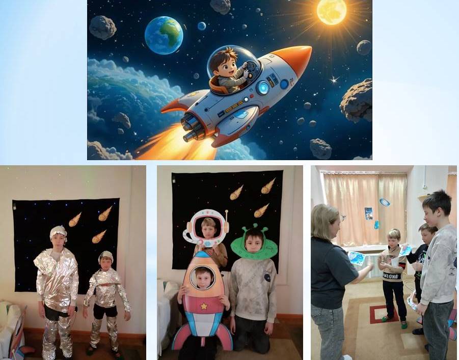 В отделении реабилитации несовершеннолетних с ограниченными физическими и умственными возможностями специалисты организовали фотосессию для ребят, где предложили им сняться в образе космонавта! С 6-12 апреля по всей стране объявлена первая Российская Неделя космоса.